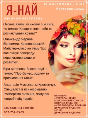 Запрошуємо чарівних панянок на третій жіночий фестиваль «Я – НАЙ», який відбудеться 10 листопада, у ресторані LEVEE.