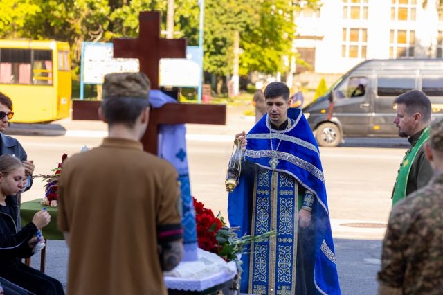 Разом із громадою провести героя в останню путь приїхали його бойові побратими. Чин поховання звершив настоятель храму Пресвятої Богородиці Православної церкви України протоієрей Артур Холоденко.