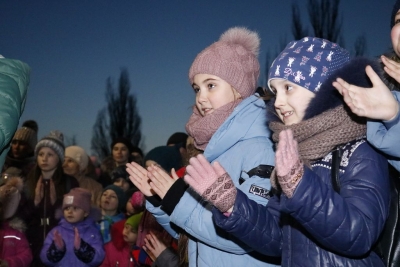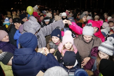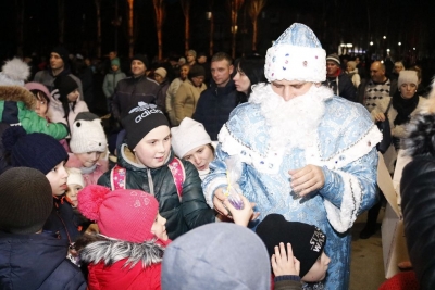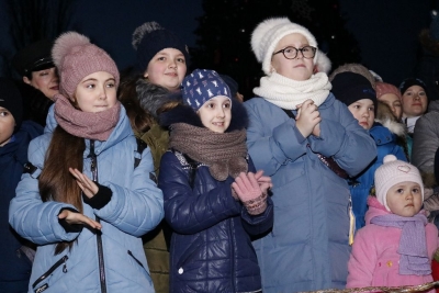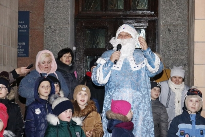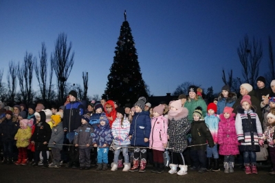 «Один-два-три! Ялинко, запали свої вогні!» – скандували діти на площі сьогодні, 19 грудня, і скромна прикраса передноворічного міста миттєво перетворилася на яскраву лісову красуню, біля якої і відбулося свято, підготовлене колективом Світловодського міського Палацу культури.