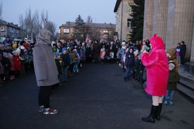 Єдине, що не зовсім вдалося навіть директорці Палацу культури Ларисі Ляшенко, це вишикувати дітей у дві колони, щоб вони без зайвої метушні, пройшовши крізь «золоті ворота», отримали подарунки від Святого Миколая.
