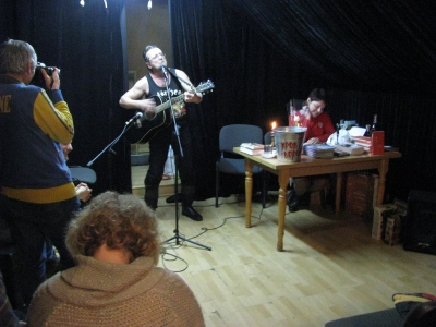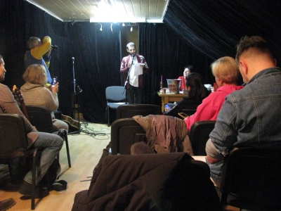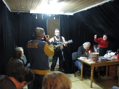 – Є такий митець, поет ромського походження Сергій Пантюк. Заприязнився я з ним наприкінці позаминулого року, коли він на запрошення голови світловодської «Просвіти» Сергія Гайдука провів свої поетичні читання для учнів та місцевої інтелігенції у Світловодському РБК. А назад він мав їхати потягом пізно увечері з Кременчука. Тож час коротали у мене… на кухні. Під мій сорокаградусний «мармелад» він читав мені та іншим гостям свої більш «камерні» вірші. А я, алаверди – поспівав своїх пісень. Від чого він ледь зі стільця не звалився… А день народження у нього 10 лютого. І він, за усталеною традицією, збирає на вечір цього дня у книгарні «Смолоскип», що на Подолі у Києві, мистецьку тусовку, яка зветься «Віршень». П’ють «ворожу кров», читають вірші, співають пісні. Завсідниками там і такі собі брати Капранови, і видавець «Абабаґалаґа», і Едуард Драч, і Іван Андрусяк. А ще – різні міністри та нардепи. Коротше, і я там заспівав минулого року. Хто реготав, хто хапався за голову, а хто й за серце. Та все ж Пантюк погукав мене й цьогоріч.