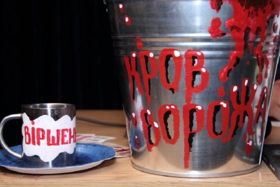 Не лякав, а навпаки! Коли я вийшов до мікрофону і привітав іменинника, одразу попередив: наближається світле свято всіх закоханих. Тому «кров» пити я категорично відмовляюся і співатиму виключно про кохання. Перша пісня про мою кохану, яка не могла відімкнути двері, щоб зустрітися зі мною і, рознервувавшись, перебила сусідів і навіть розтрощила поліцейський фургон. Друга пісня про те, як молоді люди займалися коханням в салоні автівки під час руху, що призвело до трагічних наслідків. Та й третя пісня витримана у такому ж ключі. Тільки кохання!  Одним словом, публіка (серед якої були і суворі вояки АТО/ООС з націонал-патріотами) недружньо зашипіла – ми, мов, тут патріотично налаштувалися, а ти шмарклі про кохання розвів. Тож, я був просто вимушений перехилити кухоль «ворожої крові» і співати про український авіа-наліт на Москву з наступним її бомбардуванням. Це жах просто якийсь! Тепер я десять разів подумаю, ніж приймати чергове запрошення на цей «Віршень».