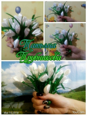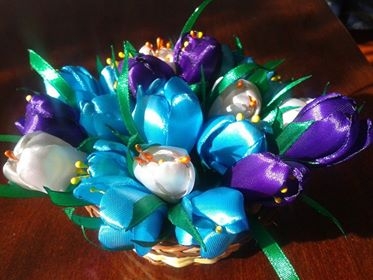 «А коли народилася Евеліна, мимоволі прийшло захоплення творити яскраві квіти зі шматочків тканини… У такий спосіб, в умовах фінансової скрути, з підручних матеріалів, я намагалася порадувати свою маленьку, - говорить Тетяна. – Хоча цій справі дуже заважала ліва рука. Вона боліла і не давала змоги зосередитись».