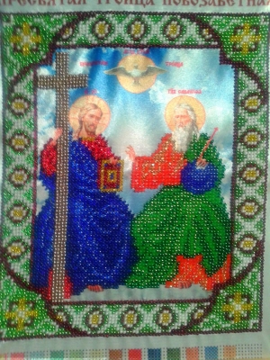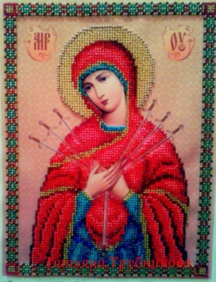 У Харкові, де їй «приміряли» штучну лівицю, через брак коштів, виготовлену у, так би мовити, бюджетному варіанті, вона, залишивши вдома з мамою свою п’ятирічну Евеліну, почала вишивати Божу матір. Однією – правою. Хотілося додому… Тамтешній лікар, який займався її реабілітацією, коли побачив заготовку майбутньої ікони, поставив умову: якщо так рвешся додому, вкладешся з іконою до ранку – випишу додому. І вона вклалася…