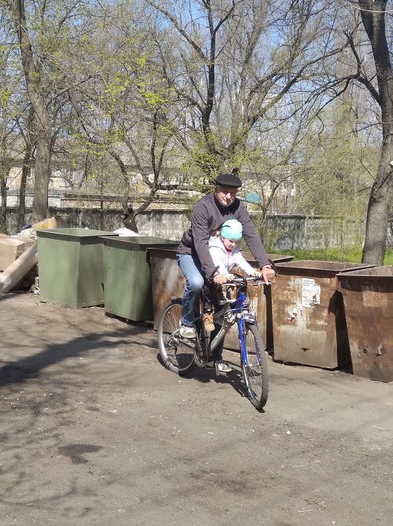 І тут ваш кореспондент, збираючи інформацію на задану тему, в одному з дворів запримітив секретаря міськради Юрія Сапянова. Він велосипедом, всадовивши на раму донечку, «намотував кола» довкола тамтешнього смітника.