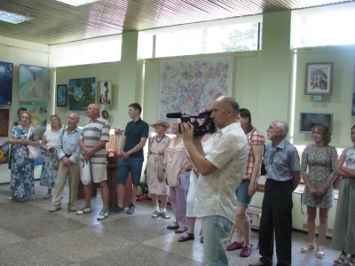 … Відкриваючи виставку, берегиня галереї Ксенія Бондаренко наголосила, що життя поступово повертається до своєї звичності. І в частині прекрасного, зокрема. Після чого усіх присутніх привітав Костянтин Каспров. Також із поетичним словом до присутніх звернулися голова і учасниця творчого об’єднання «Літо» Лідія Лаврик та Валентина Павленко. А світловодський художник Анатолій Сіромаха розповів коротеньку притчу про такого собі давньогрецького гончара на прізвище Депутат… Дочка у нього була. Однієї ночі побачила вона уві сні контури свого коханого на стіні, вхопила кинджал і вирізала ці контури на тій стіні. Що й надихнуло її татка на новітню техніку розпису своїх гончарних виробів.