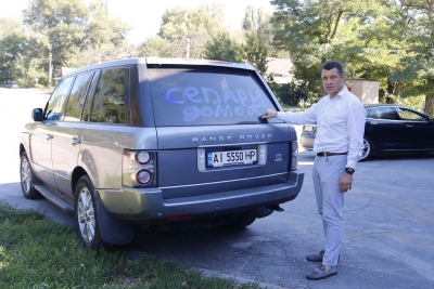 У четвер, 27 серпня, я залишив свій автомобіль Рендж Ровер, сріблястого кольору, на парковці біля Центру здоров’я, що у будинку №21 по вулиці Героїв України. Пересів у інший і вирушив до обласного центру. Повернувся у місто вночі, о 03:30, під’їхав до свого покинутого авто і побачив якийсь дивний предмет, що висів просто на дверцятах машини. Далі помітив написи на склі: «Сепары домой» та «Последние».
