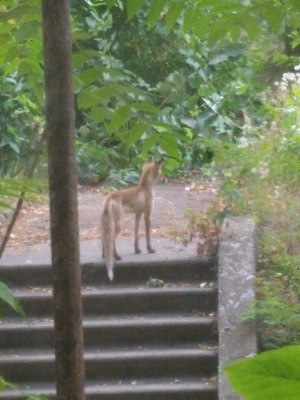 З різних причин дикі тварини все частіше підходять до осель людей, з’являються у селах і містах. Влітку кілька днів поспіль бачила маленького лисенятка, яке знайшло собі прихисток у камінні на березі Кременчуцького водосховища, а тепер – косулю.