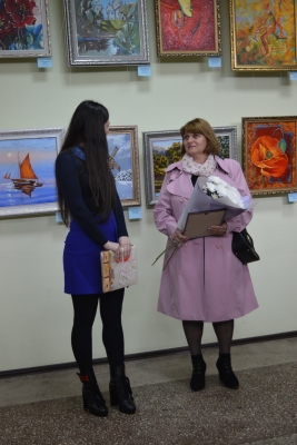 Багато теплих слів сказали названим іменинникам гості, які прийшли подивитися на картини та підтримати художників: заступник начальника управління культури та туризму виконкому міськради Наталія Крамаренко, відомий світловодський художник Володимир Товкайло, поетеса Людмила Макей, юна художниця Катерина Піскова.