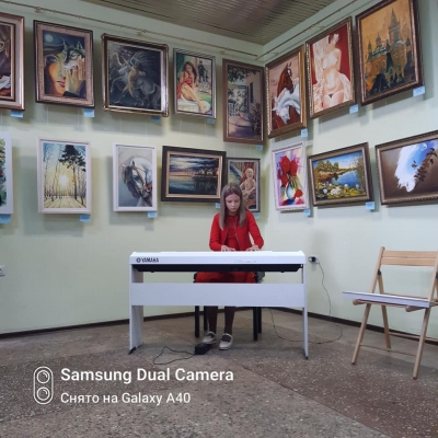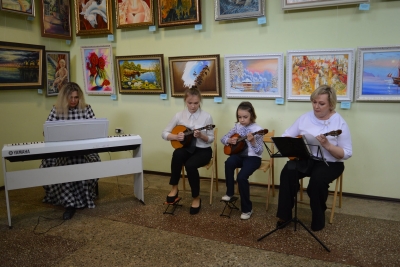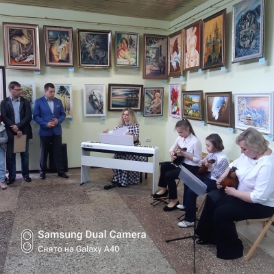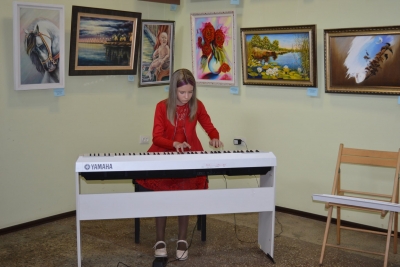Традиційно до мистецької творчості приєдналася і творчість музична. Художників та гостей прийшли привітати учні Світловодської дитячої школи мистецтв: піаністка Анастасія Татарнікова, тріо домристок: Єлизавета Воєвудська, Надія Кружкова, Тетяна Деміденко та саксофоніст Стефан Коршенко.