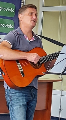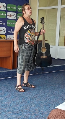 – ... Зрозумів – я, типу, виявився не формат... Я теж спочатку дещо офіґєл: у фойє офісу, де розмістився вернісаж з картинами художників-аматорів нашого району, відкриваючи захід, перед публікою виступили вже згаданий мною Домбровський та заступниця голови райради Валентина Мележик... Перед переглядом робіт, ведуча запропонувала присутнім вшанувати пам’ять загиблого 16 серпня у борні з рашистами нашого земляка Артема Мазура. Потім, оглянувши роботи, всі направились на другий поверх – на таку собі поетичну читанку. Запросили і мене... Мій ступор дещо послаб, коли серед натовпу я угледів ще одного чувака з гітарою – ним виявився місцевий бард, до слова, уродженець Світловодська Олександр Яковлєв. Вже там, у затишній конференц-залі, почалася ця читанка, де своїми доробками похвалилися й жительки Світловодська Лідія Лаврик, Алла Криницька та її онука. Ми ж з Сашком, своїми виступами, у двох паузах цих читаннь, я б сказав, мали оживити загал... Мені це вдалося! Двома своїми творами про пісні і танці українського народного ансамблю у нью-йоркському... морзі і про те, як українські «дикі гуси» розбомбили Кремль, оживив ще й як цей самий загал – було відчуття, що аплодують мені щиро, а не тому, що так положено.
