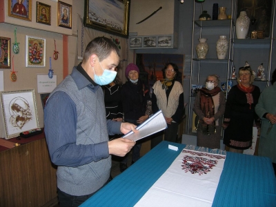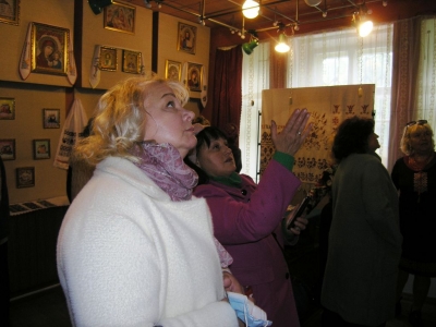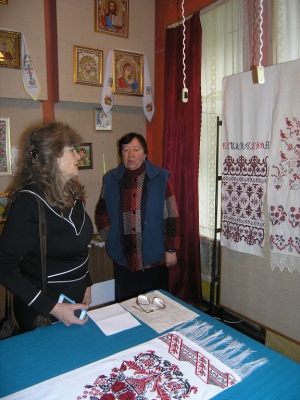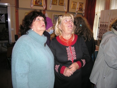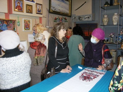 Виставка відкрилася напередодні свята Покрови Пресвятої Богородиці, тож не дивно, що на ній представлено також і багато ікон. За релігійними канонами ікона – це відтворення Первообразу, тобто образу Божого, який створив людину за своєю подобою. І якою б не була ікона – вишитою хрестиком, бісером, намальованою, вона не повинна бути прикрасою. Має стати Божим захистом – так вважають і самі майстрині, тому щедро дарують свої роботи рідним та друзям.
