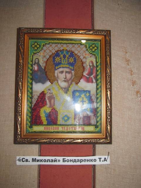 Вже кілька років поспіль у міському краєзнавчому музеї напередодні улюблених зимових свят відкривається виставка «Новорічно-різдвяні мотиви». Цього разу свої чудові вишиті картини – «Святий Миколай», «Пантелеймон цілитель», «Таємна вечеря», «Різдвяна ніч» – представила Тетяна Бондаренко. Прикрашають виставку ікони в техніці бісероплетіння Світлани Грузін. Є на виставці і живописні роботи новорічно-різдвяної тематики. Їхні автори – викладач дитячої художньої школи Людмила Попруженко та директор цього закладу Андрій Биков. Полотна «Зимовий вечір», «Прийшла зима» (Л. Попруженко) та «Перший сніг», «Казкова зима» (А. Биков) переносять нас у неповторну атмосферу зимового свята, дарують радість від зустрічі з мистецтвом прекрасного, з казкою та дитинством. Втім як і картина Наталії Крячко «Малі колядники», виконана в стилі, близькому до петриківського розпису.