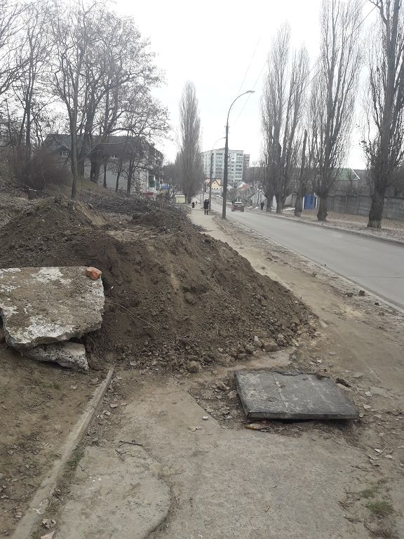 У холодну погоду на тротуарі намерзають брили, у теплу – тут ходити не можна – глина чіпляється до взуття, яке потім доводиться мити під краном. Чи не шкода взуття – питання риторичне.