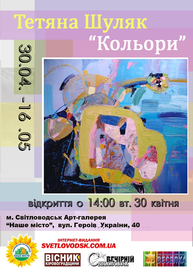Арт галерея «Наше місто», запрошує на персональну виставку «Кольори» від професійної художниці Тетяни Шуляк з м. Кременчук.
