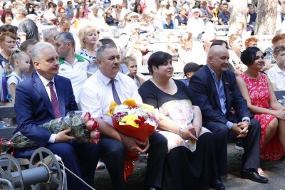 Саме там об 11:00 лунали вітання від міської влади та помічника народного депутата України Олеся Довгого Марини Саакян. Крім вітальних слів, були і подарунки та нагороди світловодцям за активну громадську позицію та значні досягнення у різних сферах діяльності. За традицією особливу увагу приділили і закоханій парі, яка стала подружжям саме у День міста, та родині, у якій напередодні свята народилася донечка.
