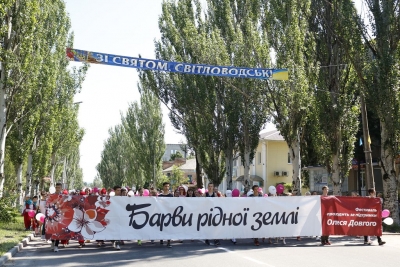 Масштабні святкування розпочалися на центральній площі міста, де о 10:00 стартував марафон поздоровлень та відбувся флешмоб за участю учасників фестивалю «Барви рідної землі». Дещо пізніше, під музичний супровід оркестру світловодці та гості міста, а також понад тисячу конкурсантів регіонального фестивалю урочистою ходою рушили до парку культури і відпочинку ім. Т.Г.Шевченка.