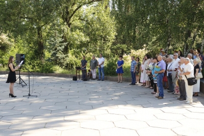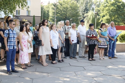 Слова пам’яті та скорботи на мітингу висловили секретар міської ради Юрій Сапянов, журналіст та офіцер запасу Олесь Неділя. На захід завітала і помічник-консультант народного депутата України Олеся Довгого Марина Саакян.