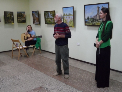 Для гостей лунали пісні у виконанні співачки Ірини Стрижак. Цікавим було те, що Ірина грала на 12-ти струнній гітарі, а акустика приміщення арт галереї створювала ілюзію супер об’ємного звуку. Ірина дуже влучно підібрала пісні про природу життя та його зміни. В обрамленні картин чудові мелодії сприймалися по новому, а слова одразу потрапляли до серця, торкаючись душі.
