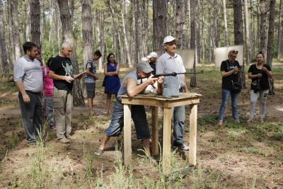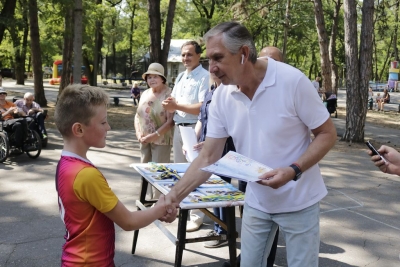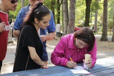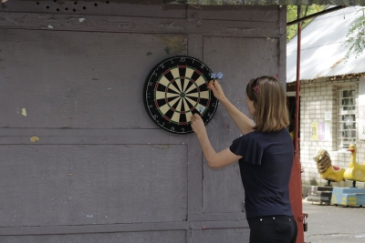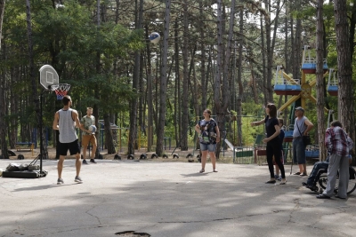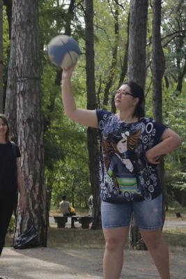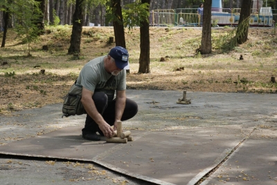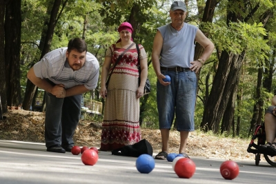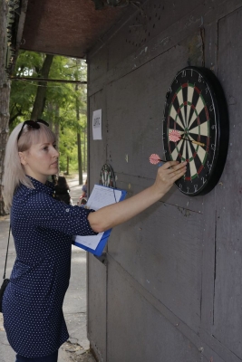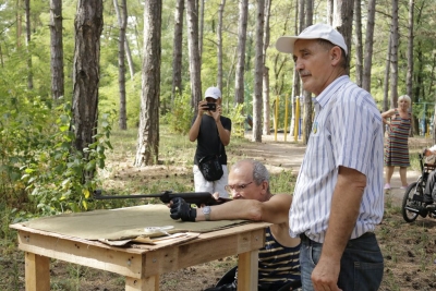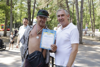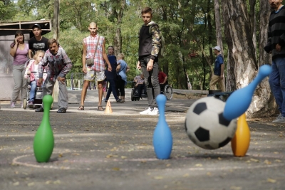 І розпочалася спартакіада! На всіх паркових майданчиках майже три години півсотні її учасників виборювали перемоги у шести видах рекреаційного спорту… Бомбаскет (баскетбольна корзина, у яку треба влучити важкуватим баскетбольним м’ячем), дартс, кеглі тощо. Та поза сумнівів, фаворитом стала кульова стрільба, яку, разом із мішенями, столом і, звісно, повітряною рушницею з кулями, забезпечив невтомний ентузіаст здорового способу життя Олександр Форостяний – черга учасників постріляти була тут стабільно високою.