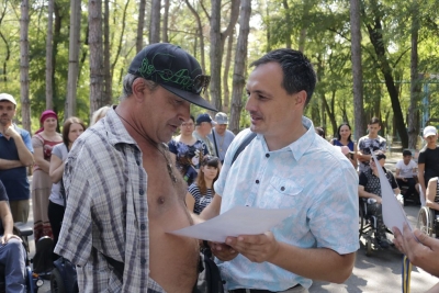 Саме у Парку 31 серпня вирувала спартакіада серед людей з інвалідністю, що об’єднані у громадську організацію «Добрада», яка є чи не найактивнішою складовою обласного осередку Всеукраїнської організації «Союз організацій осіб з інвалідністю», – за словами почесного гостя змагань, голови обласної ВОІ СОІУ Сергія Подорожнього.